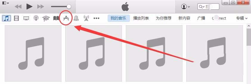 4、在iTunes主界面中,選擇應(yīng)用圖標(biāo),如下圖所示。