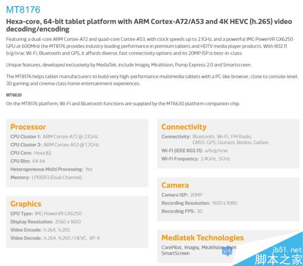 到了小米平板3這一代,小米所選用的是一顆來自聯發科,型號為MT8176的6核心處理器。這顆處理器使用28nm工藝打造,擁有兩顆2.1GHz的Cortex-A72核心和四顆1.7GHz的Cortex-A53核心。