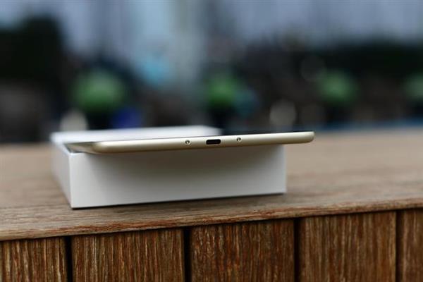 金屬后殼較于iPad mini更“磨砂”一些,質(zhì)感和手感稍遜一些。機(jī)器的模具應(yīng)該就是前兩代的延續(xù),前代用戶吐槽的后置揚(yáng)聲器也沒有解決。