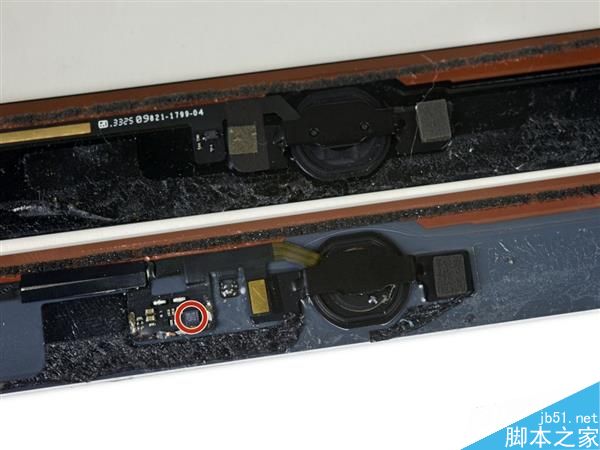 翻轉數字轉換器,其背面顯示了它和初代iPad Air最大的不同:那就是Touch ID及其相關硬件的加入。