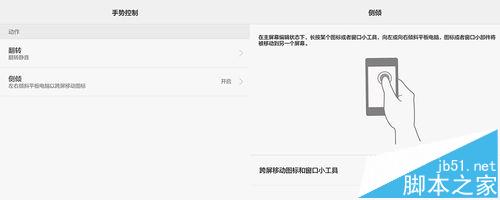 3、通過系統【設置】>【智能輔助】>【手勢控制】>【側傾】,打開【跨屏移動圖標和窗口小工具】開關,就可以在單手握持平板的時候輕松在桌面屏幕間移動圖標了。