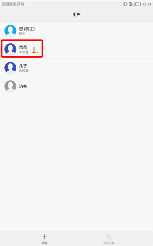 添加用戶。點(diǎn)擊添加或添加訪客,并按照屏幕提示添加子用戶或訪客用戶。添加用戶后,在鎖屏界面上會(huì)出現(xiàn)。鎖屏界面顯示的用戶即為當(dāng)前登錄的用戶。