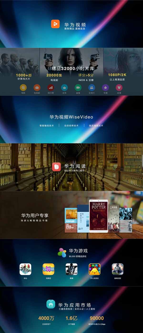 內(nèi)容方面,華為將提供超過(guò)1000部精彩片源、20000集電視劇,總計(jì)3.2萬(wàn)小時(shí)片庫(kù),并支持華為WiseVideo智能編碼和畫(huà)質(zhì)增強(qiáng)技術(shù),華為閱讀還有專屬的3個(gè)月VIP權(quán)益。