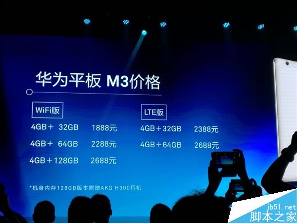 定價(jià)方面,32/64/128GB Wi-Fi版分別要1888、2288、2688元,32/64GB LTE版則要2388、2688元,其中128GB版本附送AKG H300耳機(jī)。