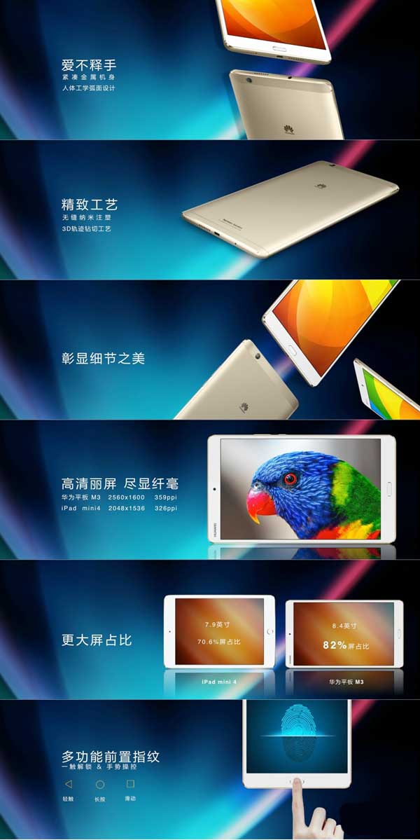 德國(guó)柏林IFA大展上亮相之后,華為今天在國(guó)內(nèi)正式發(fā)布了新款平板電腦M3,采用前置指紋識(shí)別設(shè)計(jì)。
