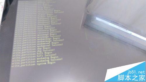6、當出現安卓機器人之后可以看到綠色的英文,稍稍等待一會兒即可完成更換,界面上會出現大大的OK字樣表示已經成功