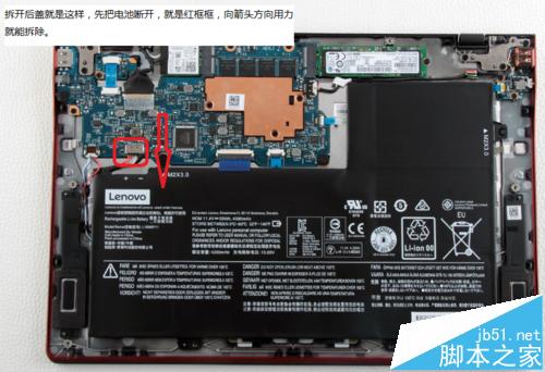 3、就看到電腦關(guān)鍵部件了,先把電池?cái)嚅_,以防止燒機(jī)
