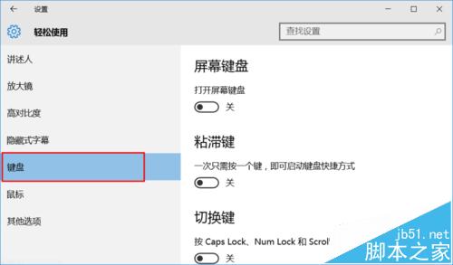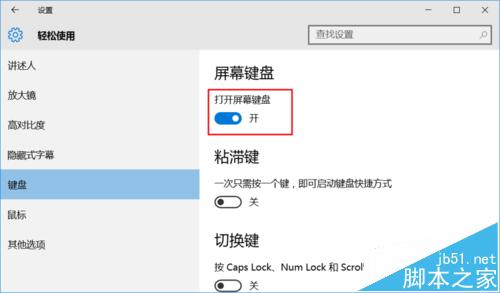 5、開啟右邊的“打開屏幕鍵盤“開關(guān)。