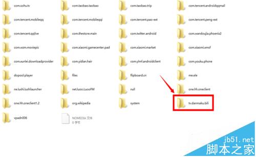 3、打開data文件夾后要在許多文件中找到''tv.danmaku.bili''這個文件夾,如圖所示。