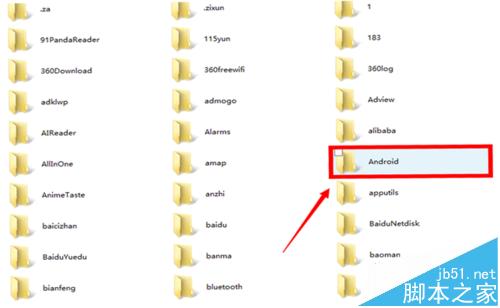 2、再次打開之后在眾多文件夾中找到"Android"這個文件夾,找到之后將它打開,看到data文件夾后依然打開。