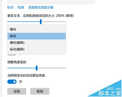 4、點擊方向下的下拉菜單,選擇您需要的屏幕顯示方式