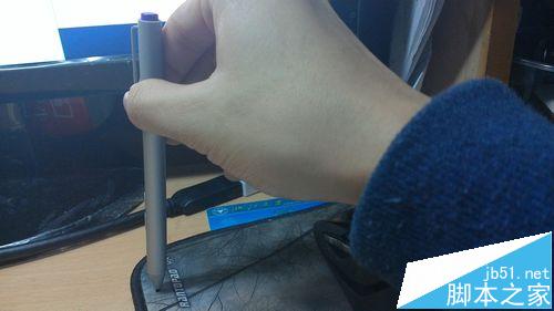 2、把筆朝下按在比較軟的東西上(比如鼠標墊),輕輕按,直到筆芯完全裝到位為止。