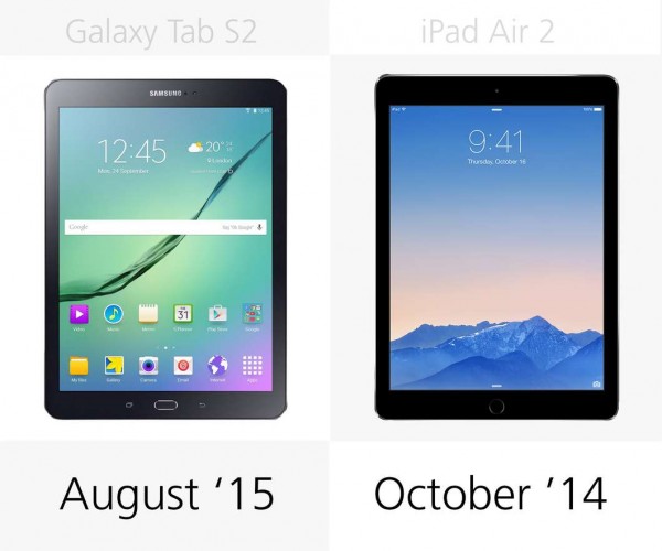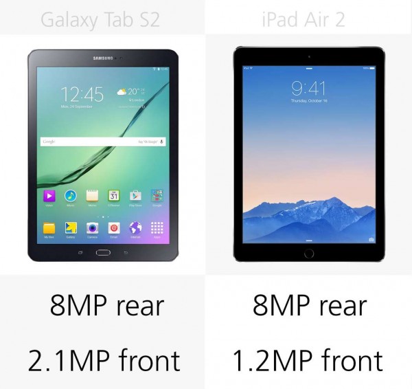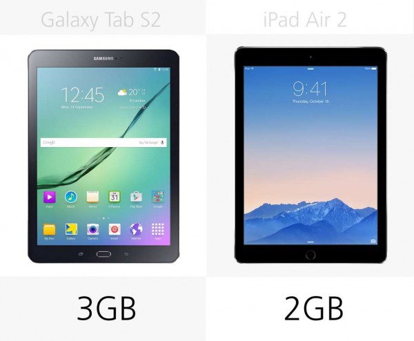 iPad Air 2是蘋果歷史上首次使用2GB內存的設備,而Tab S2則裝備了3GB的內存。