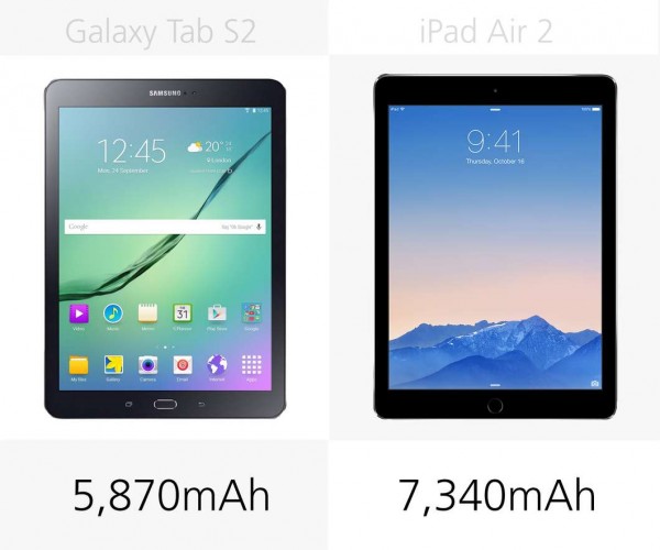 單從電池容量方面來看Galaxy Tab S2的容量要比iPad Air 2少20%,但是具體的續航表現時間還需要進一步的測試。