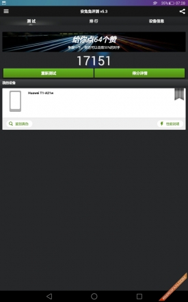 硬件方面,榮耀暢玩平板note搭載了高通驍龍410四核64位處理器,1GB+16GB組合,從配置上來看,已經(jīng)達到了目前千元級主流標(biāo)準(zhǔn),那么在性能方面又表現(xiàn)如何?下面我們就采用三款軟件對其進行測試。
