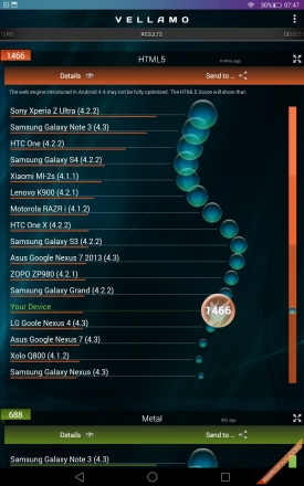 VELLAMO測試:是一款網(wǎng)頁基準(zhǔn)評測,該軟件可以評估Android設(shè)備上的瀏覽器性能。Vellamo為瀏覽器的性能和穩(wěn)定性提供了一個全面的評分,包括網(wǎng)絡(luò),腳本,渲染,和用戶體驗。結(jié)合行業(yè)標(biāo)準(zhǔn)和定制測試最后以分?jǐn)?shù)形式來表現(xiàn)一款A(yù)ndroid設(shè)備在網(wǎng)絡(luò)瀏覽方面的能力。