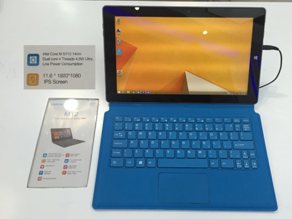 本次參展的藍(lán)魔平板涵蓋各個(gè)屏幕尺寸,除了經(jīng)典的i系列產(chǎn)品i9s和i7s外,還有最新推出的大尺寸平板i11pro和3G通話平板i8s。另外,藍(lán)魔即將上市的CoreM芯新品M12也在展會(huì)上廣受關(guān)注,吸引了海外買(mǎi)家與媒體咨詢(xún)體驗(yàn)。此前有消息稱(chēng),藍(lán)魔M12將采用4G運(yùn)行內(nèi)存和256G固態(tài)硬盤(pán),在本次展會(huì)上得到再次確認(rèn)。從配置牌可以看出,M12采用的是Intel Core M 5Y10芯片,與此前曝光的“雙核四線程 14nm”描述一致。此外M12采用1920*1080分辨率的高清大屏,配備USB 3.0接口,并支持外部存儲(chǔ)擴(kuò)展。