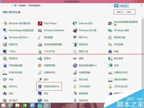 四、設置撥號打開控制面板;選擇“網絡與共享中心”