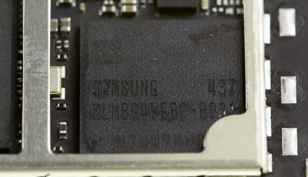 用于固定主板的拉膠共設計了五處,當我們一一將其取出,主板遍很輕松的拿出來了。接下來拍攝了主板上幾顆重點芯片的特寫。我們發現,該機的Z3580處理器是疊層封裝在爾必達2GB內存的下面,該工藝減少了內存與處理器之間的距離,加快了內存的響應速度