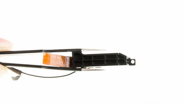 接下來卸去N1的天線部分。諾基亞N1采用雙頻Wi-Fi模塊,所以共有兩個天線,分別位于機身上下兩邊。由于下面的天線與揚聲器集成在一起,我們只有將揚聲器卸下才能分開這個天線。