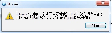 第三步、當(dāng)看到屏幕黑屏?xí)r,請(qǐng)松開電源鍵,繼續(xù)按住主屏 Home 鍵,直到電腦端的 iTunes 出現(xiàn)檢測(cè)到一個(gè)處于恢復(fù)模式的 iPad;