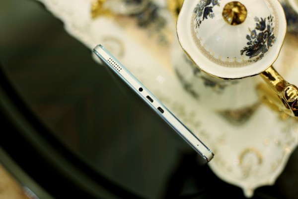 藍魔i9s的側邊采用鋁合金材質,并且做了兩個CNC倒邊處理,兩條金屬亮邊直接提升了整個平板的檔次,而且在工藝方面可以達到一線廠商的水準。邊框噴砂工藝形成的金屬磨砂質感給手的觸感十分細膩。接口和按鍵都安置在了機身的側邊上,左側為Micro USB接口、Micro HDMI接口、3.5mm耳機接口。這里值得一提的是,藍魔i9s配備了兩顆喇叭單元,分別設置在了機身的兩個側邊之上,看電影或者玩游戲在立體聲音效方面要比單揚聲器好了不少。