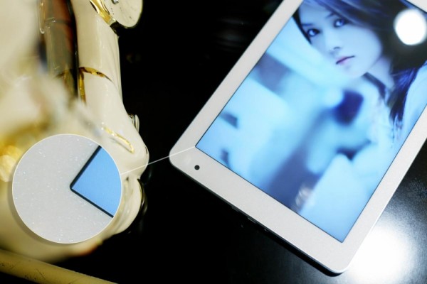 這里我們注意到一個細節,藍魔i9s的白色鋼化玻璃面板并不是純正的白色,而是在里面增加了銀色閃亮的珍珠粉,就像是汽車的金屬烤漆一樣,隨著平板角度的變化會閃閃發亮。這樣的一個處理避免了純白色的單調,而且在實際的視覺體驗方面給人的感覺是十分不錯的。