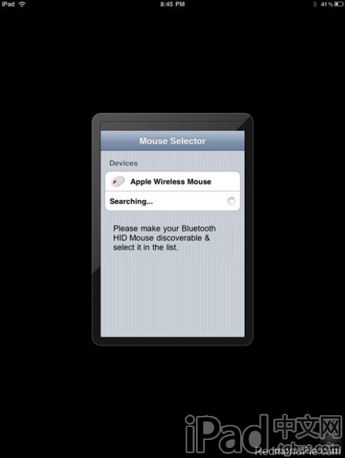 這時保證你的蘋果藍牙鼠標是開著的,iPad搜索并匹配連接鼠標。