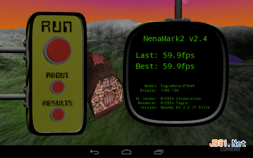 NenaMark2是一款用于Android設備的硬件加速基準測試程序,通過演示一款實時渲染的畫面來對手機的圖形能力進行測試,包括反射、動態陰影、曲面參數、復雜光線模式等內容,需要Android2.0以上系統和OpenGL ES 2.0支持。