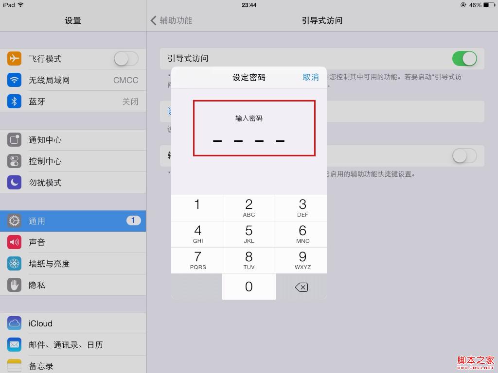 第五步—關閉引導式訪問:還是在該應用界面連按home鍵三次,輸入密碼,即可關閉引導式頁面(提示如下圖所示)