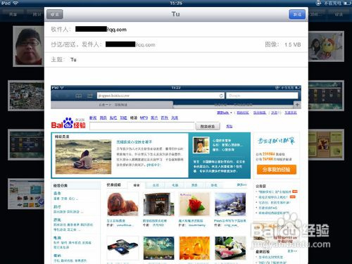 2)會在ipad上打開您的郵箱,輸入郵箱地址、主題,點擊【發送】,可以和ipad上的郵箱用同一個郵箱的,因為文件時上傳到郵箱服務器了,您到什么地方都可以打開查看郵箱郵件。