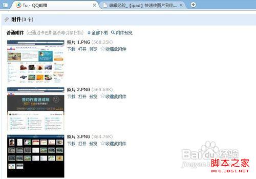 3)在電腦上登錄郵箱,可以看到在ipad上選擇的圖片都在這封郵件的附件里。