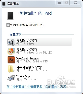 1)ipad用數據線連接電腦,會彈出【自動播放】窗口(如果您沒有禁止的話)