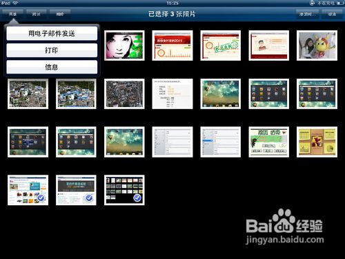 1)在ipad截圖文件夾下選擇您要傳輸到電腦的圖片(可以多選),然后直接點擊【編輯】-【共享】-【用電子郵件發送】