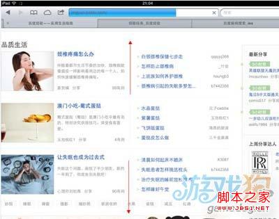 在我們用 Safari 來瀏覽網頁的時候,可以用單個手指“上下掃動”,從而可以查看更多的網頁內容,如圖所示