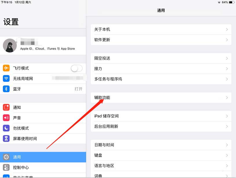 3、在通用設(shè)置中,找到輔助設(shè)置