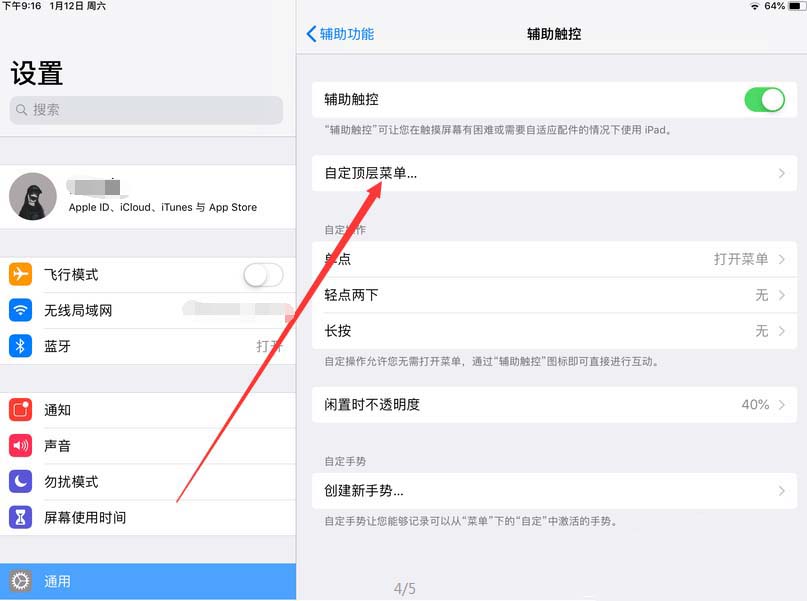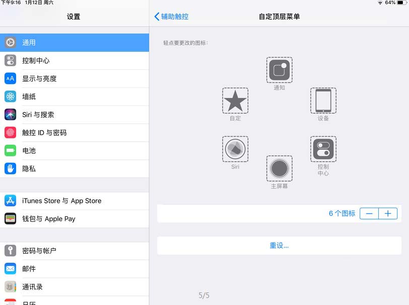 5、點(diǎn)擊輔助觸控,里面可以對(duì)小球進(jìn)行編輯