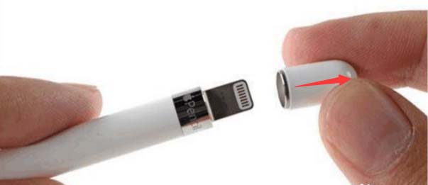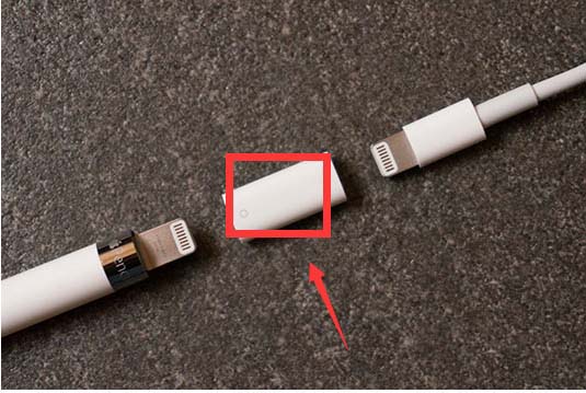 4、蘋果還為apple pencil設(shè)計了充電連接器,可以直接使用你的lighting數(shù)據(jù)線給它充電,如下圖所示