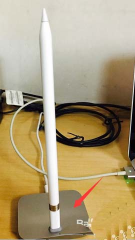5、很多朋友都有相應(yīng)的充電底座,插上充電,比插在ipad上更安全,不易被折斷,如下圖所示
