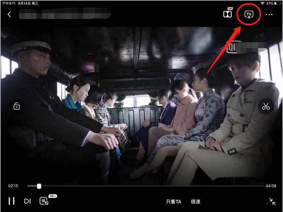 2、點擊屏幕右上角的投屏圖標,有些視頻App的投屏圖標隱藏起來了,需要點擊右上角的三個小圓點展開。