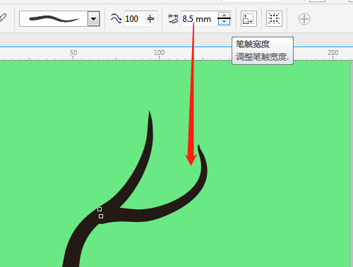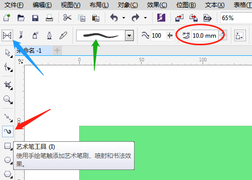 2、選繪圖工具中藝術(shù)筆工具,屬性欄中如圖進(jìn)行設(shè)置。