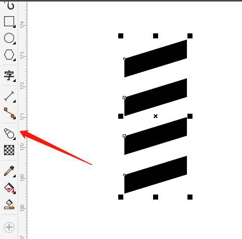 用矩形工具畫矩形,變形后,再用調(diào)和工具做出4個一樣的