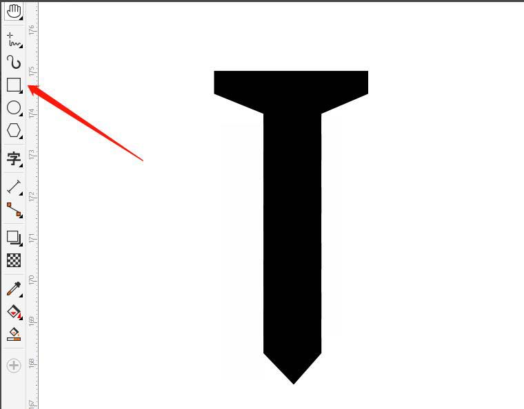 用矩形工具畫矩形,按ctrl+Q轉(zhuǎn)換為曲線,做出釘字的形狀后,再與之前的梯形合并,填充黑色