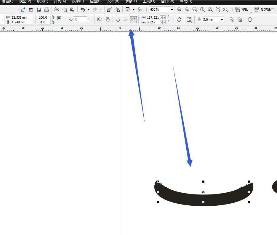 將弧形轉化為對象,然后選擇兩個圖形進行焊接,可以合并為一個圖形,完成
