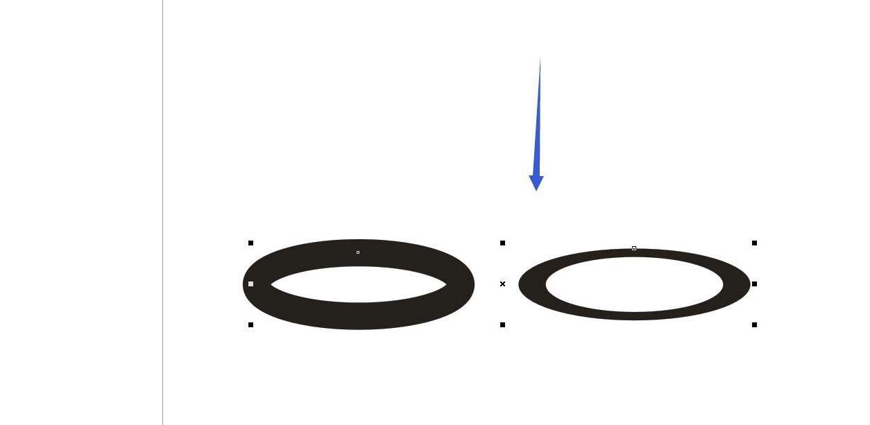 將這兩個橢圓形都向下壓扁,可以得到不同的效果,第一個圖形輪廓是一樣粗的,另一個是變形的