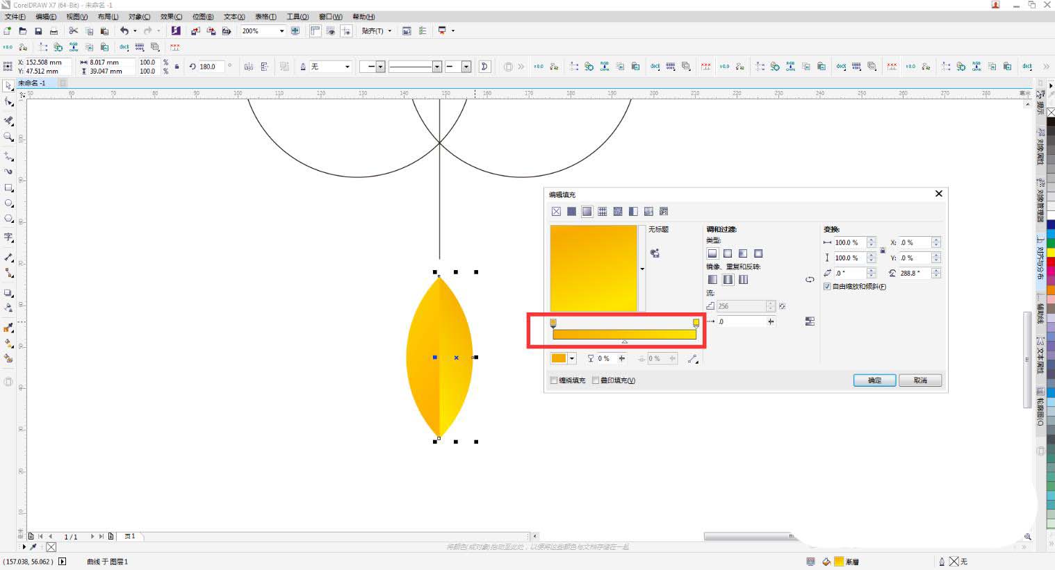 3、把小葉子移出來,去掉描邊,按F11填充漸變色,按Ctrl+g組合起來再旋轉,按住Ctrl鍵拖動水平翻轉復制一個,再按Ctrl+g把兩片葉子組合起來。