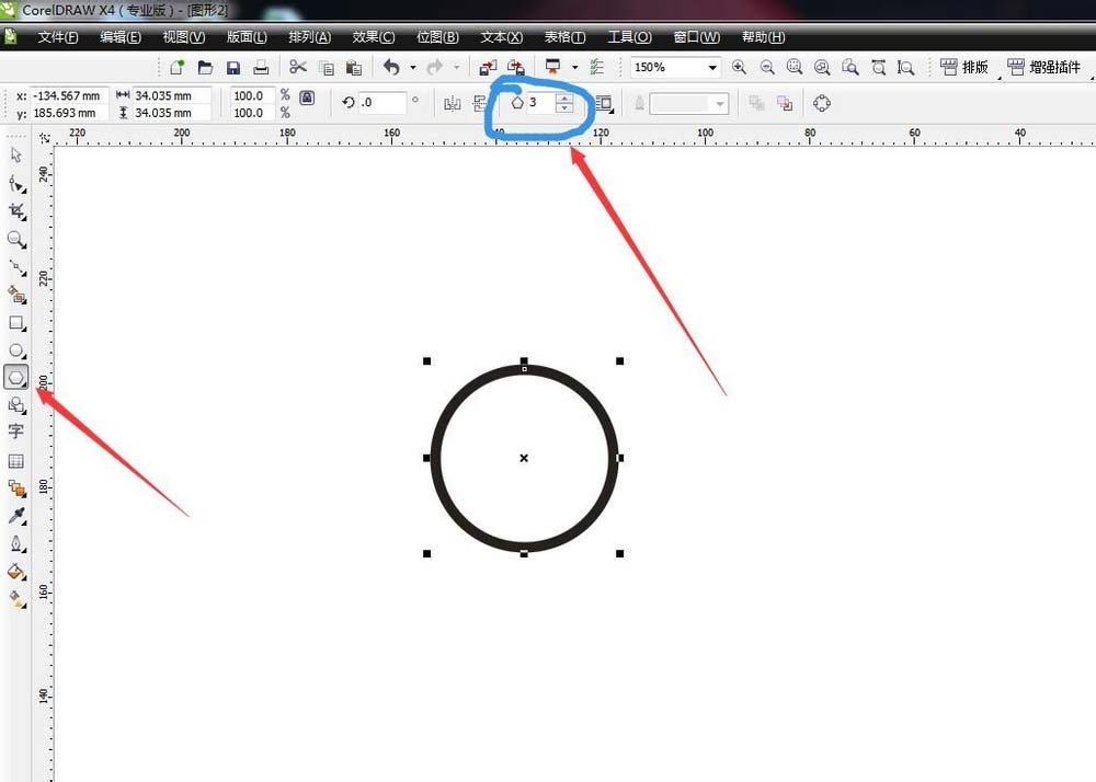 3、設(shè)置輪廓筆。選中圓形,點(diǎn)擊輪廓筆工具,設(shè)置輪廓線為1mm,勾選按圖像比例顯示