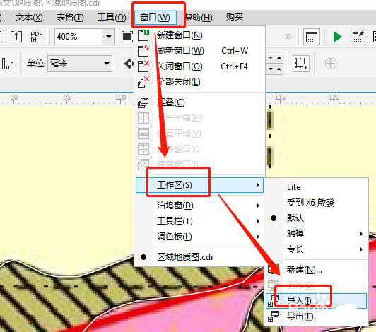 4、在菜單“窗口”-“工作區”-“導入”選擇“CorelKits.cdws”文件導入。