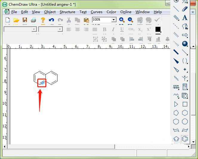 4、出現兩個苯環,在點擊第一個苯環的邊緣,依次反復