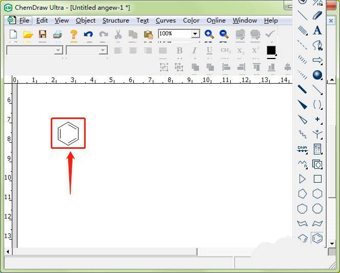 1、打開Chemdraw,看到右側的菜單欄,點擊苯環結構